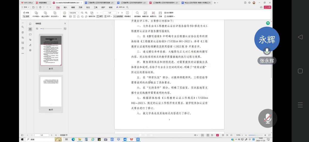 苏婷以海南大学通信工程专业自评报告撰写的经验为例,着重强调了专业持续改进的重要性,她表示,专业在面向产出的标准制定、教学实施和质量评价方面需要有理有据、形成完整闭环。张永辉阐述了最新版专业认证自评报告的修订变化,并从学生、培养目标、毕业要求、持续改进、课程体系、师资队伍和支持条件等7个自评报告重要组成部分着手,详细讲解了各部分撰写的重点与难点,他强调,当前的专业认证自评报告大幅简化撰写内容,突出过程与效果,进一步明确了“有效证据”,因此,是否实质性地开展了相应工作是重要关注点。